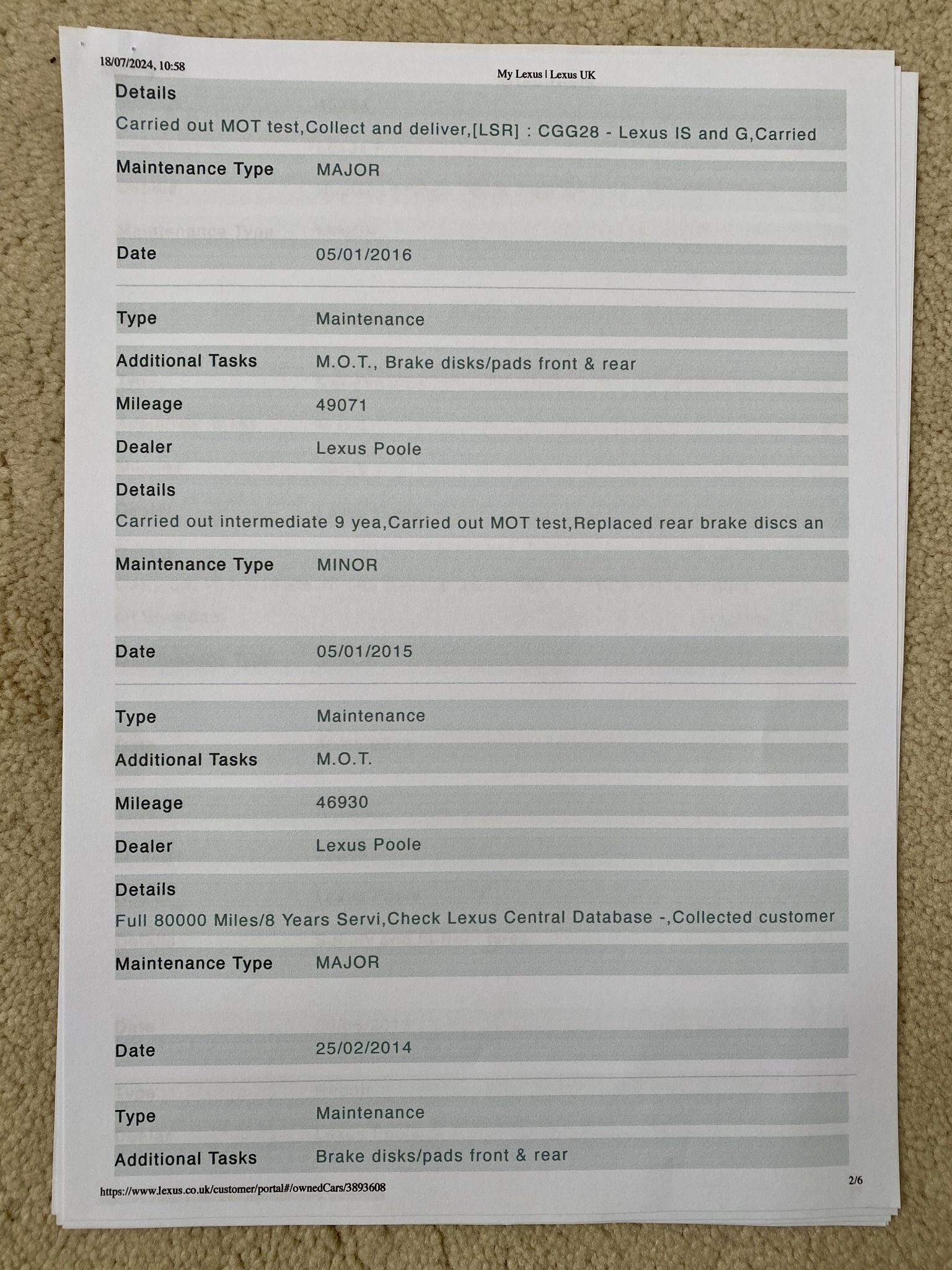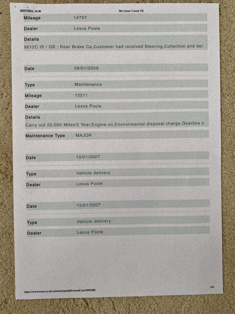 Metallic Flare-moon silver with full Sussex grey nappa leather. Only 1 owner from new with a full and total Lexus main dealer (Lexus Poole) service history along with a Lexus extended warranty throughout his ownership. Spec includes but is not limited to: Electric windows/seats (with memory and heating)/steering wheel/rear blind/mirrors (heated)/PDC/ABS/Auto or paddle shift gearbox/Multi function steering wheel/CD/MP3/Radio/ Air conditioning/Xenon lights/17” Anthracite alloys (unmarked) with as new Bridgestone Potenza S001 tyres 235x45x17 front and 245x45x17 rear. Supplied to its 1 and only private owner by Lexus Poole in 2007 with services @ 12,511, 17,072, 22,048, 26,291, 30,781, 39,410, 46,930, 49071 and @ DDXtech at 50,705 respectively, all taking place at Lexus Poole. Upon sale the car will be freshly MOT’d and will undergo another service at just over 50,000 miles. Supplied with 2 key fobs, Wallet, literature, owners manual, stamped service book and Full car vertical report. The full spec list really is too long to print. One of the quietest, smoothest cars I’ve ever driven in exceptional condition throughout….No disappointments!...OFFERS - P/X - SWAPS CONSIDERED - DOOR TO DOOR DELIVERY AVAILABLE, FREE WITHIN 100 MILE RADIUS…